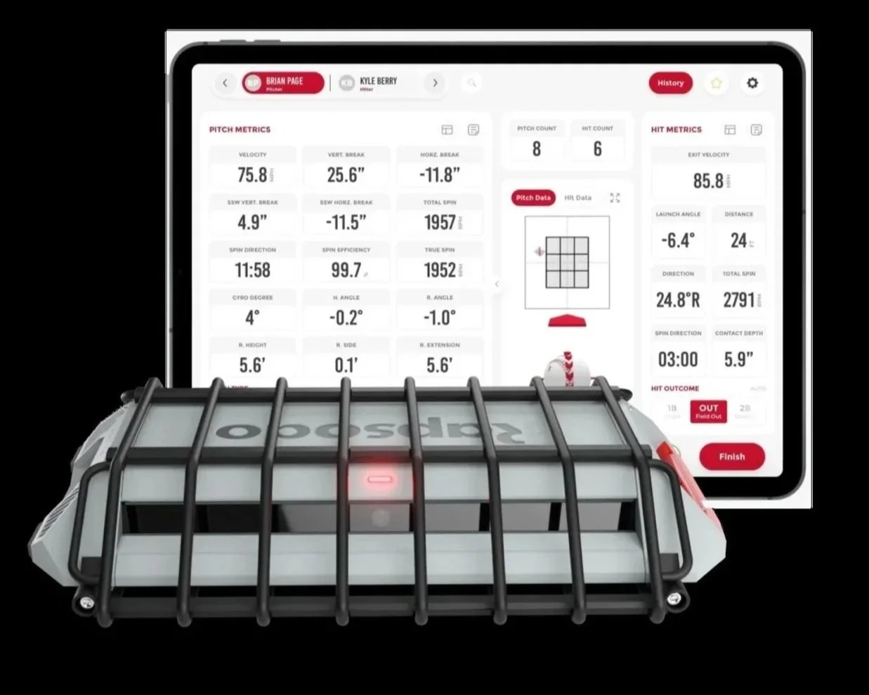Portable professional hitting and pitching performance tracking.